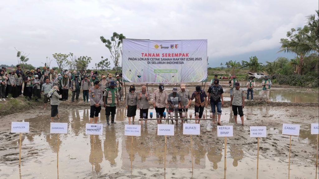 Sigi – Pemerintah bersama unsur Kementerian Pertanian, pemerintah daerah, dan para penyuluh pertanian melaksanakan kegiatan tanam serentak pada lokasi Cetak Sawah Rakyat (CSR) di Kelompok Tani Vinero Jaya, Desa Beka, Kecamatan Marawola, Kabupaten Sigi, Rabu (12/3/2026).